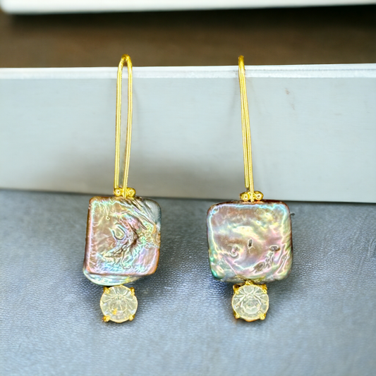 Gold Plated Grey Baroque Hangings with Zircons