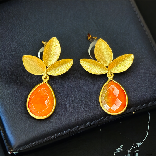 Gold-Plated Floral hangings with rust stones