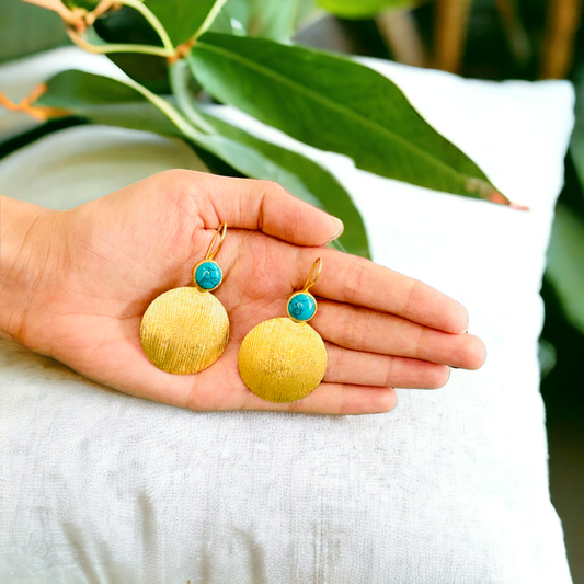 Gold-Plated Round Hangings with turquoise blue stones