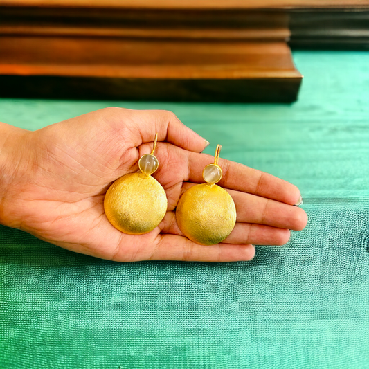 Gold-Plated Round Hangings with Grey stones
