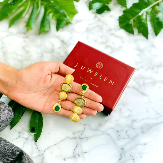 Gold-Plated Danglers with Emerald Green Stones