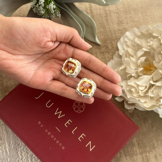 Square floral diamond studs with champagne studs