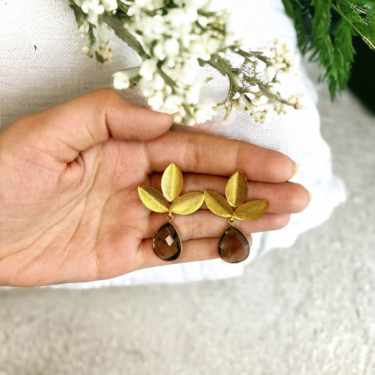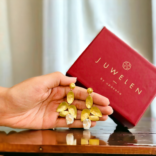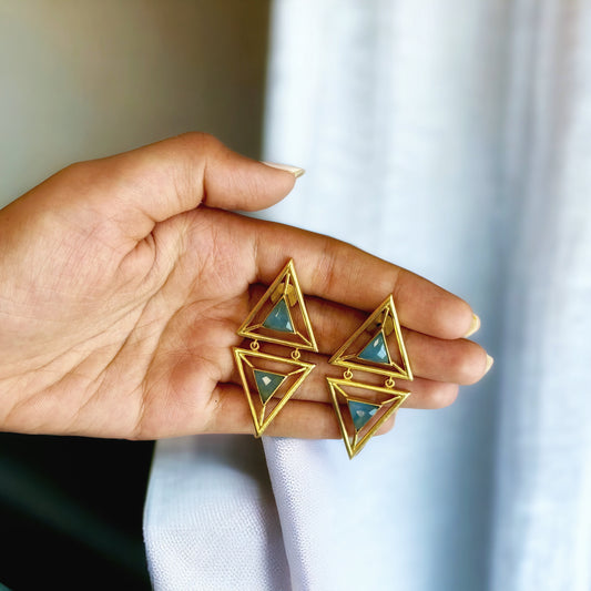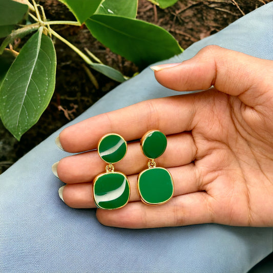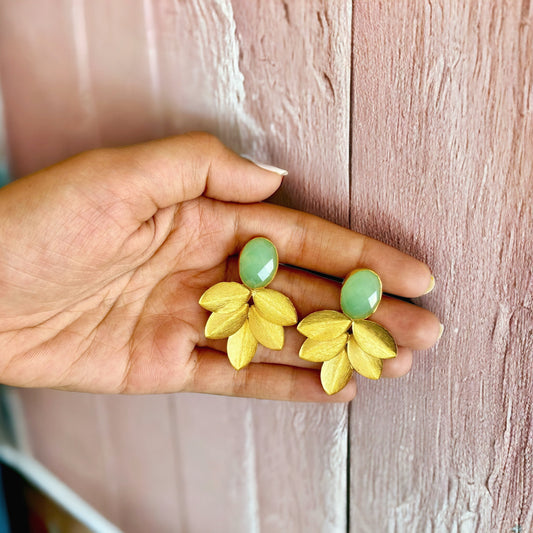 Diamond Earrings with Pastel Green Stones & Pearl Hangings