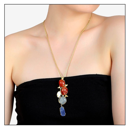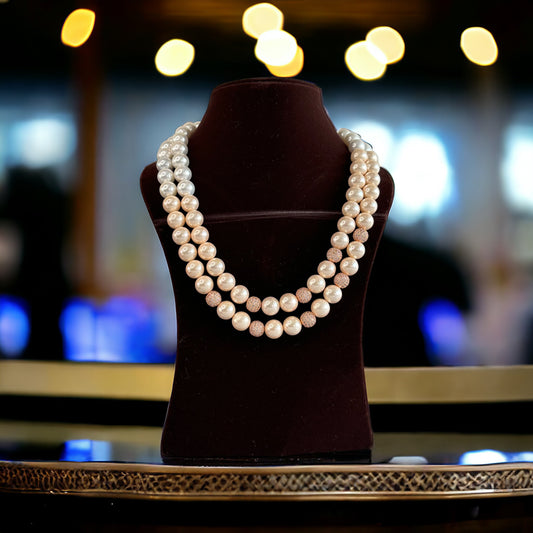 • Gold Finished String with Pastel Pink Stones and gold hangings