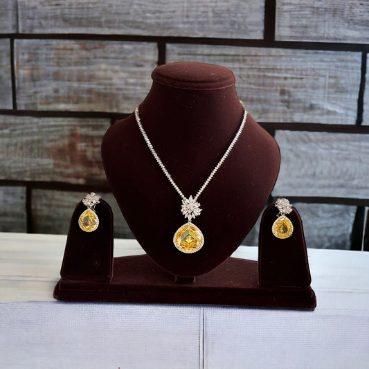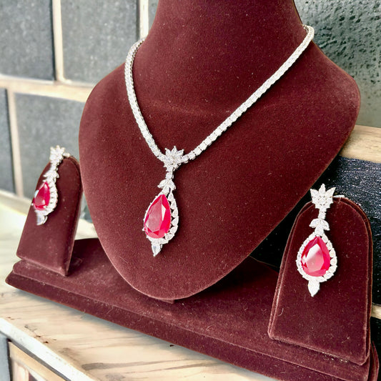 Silver Finished Diamond and Ruby Necklace with Earrings