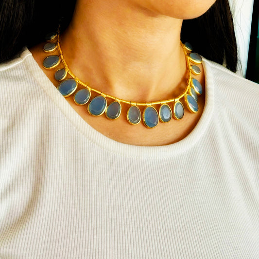 • Gold & Kundan Chocker with Earrings & Pastel Stones