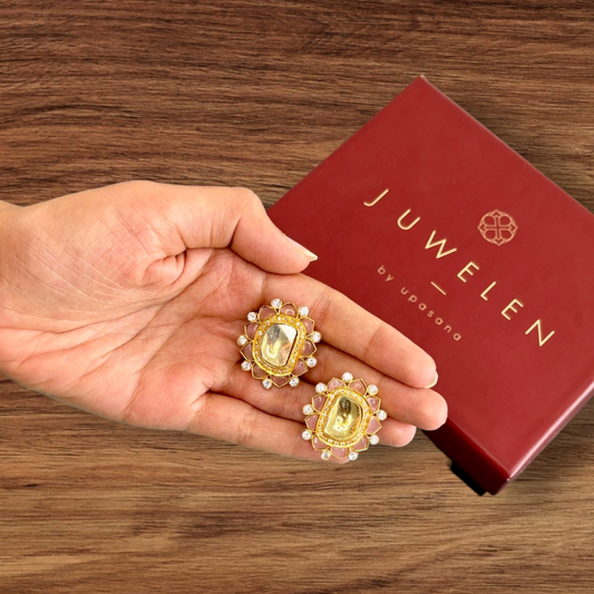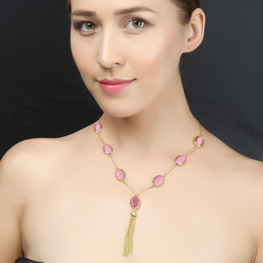 Gold Finished String with Pastel Pink Stones and gold hangings