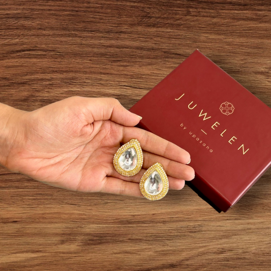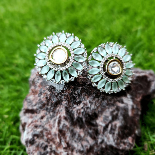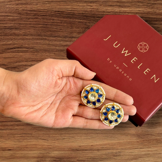 Gold Plated Round Kundan Studs with Royal Blue Stones