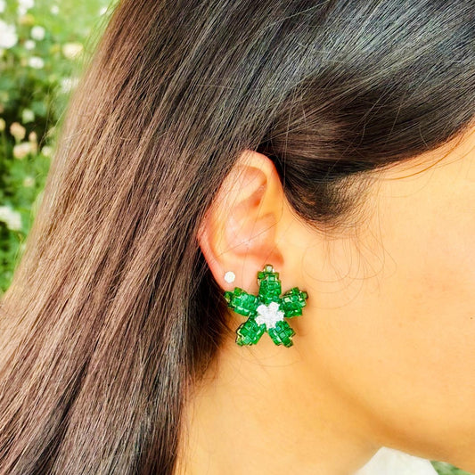 Sold outGreen Floral Studs